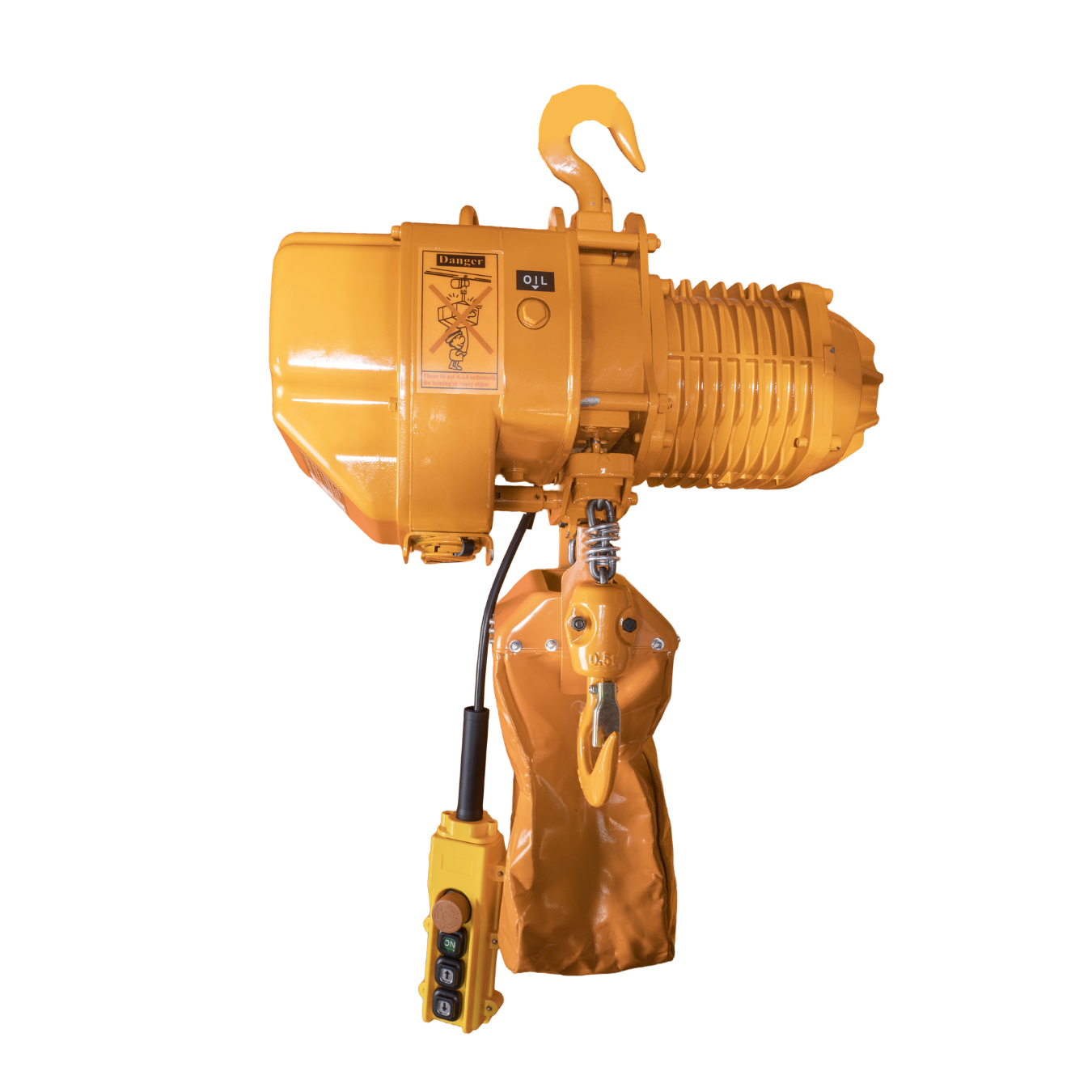 El polipasto eléctrico de cadena estándar cuenta con un sistema de caja de engranajes independiente, un mecanismo de transmisión coaxial de dos etapas en la caja de engranajes sellada y un sistema de lubricación por baño de aceite de larga duración.